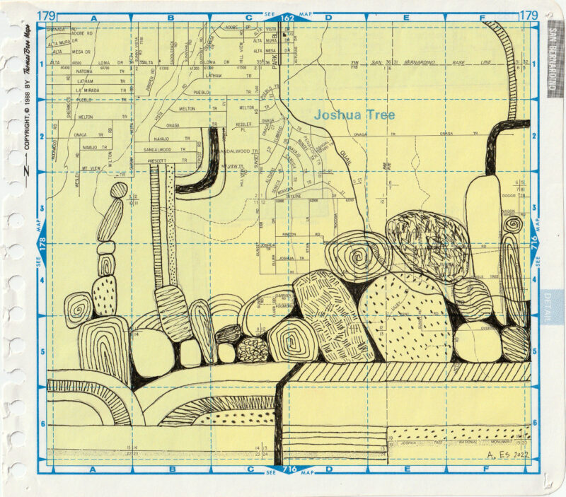 J-Tree Rocks, 2022. Original Drawing on Thomas Bros. Map, 8 x 9 inches.