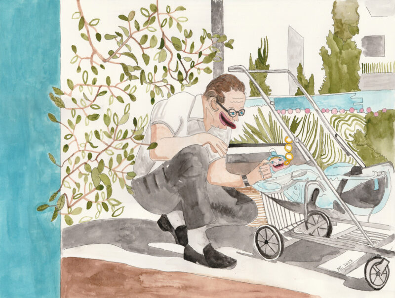 I also finished this smaller watercolor and renamed it, First Born, instead of Boy in a Stroller. I had some pretty insane titles for that one at first, but I can’t remember them off hand. It had something to do with my dad feeling ecstatic that he had a boy, like Thank Jesus it’s a Boy! And some other names were over-the-top. I just can’t remember them. They were funny to me, though. But what’s funny to me can be gruesome to others.