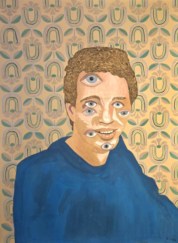 The last few days, I was working on the larger gouache painting of my brother—the one with all the eyes. Part of me thinks it’s done, but another part focuses on the areas I don’t like. My intention was to make it look a bit like a paint-by-numbers, but that didn’t exactly happen. Hannah says that the parts that scream out won’t feel the same to anyone else but me. Maybe that’s true, but I don’t know.
