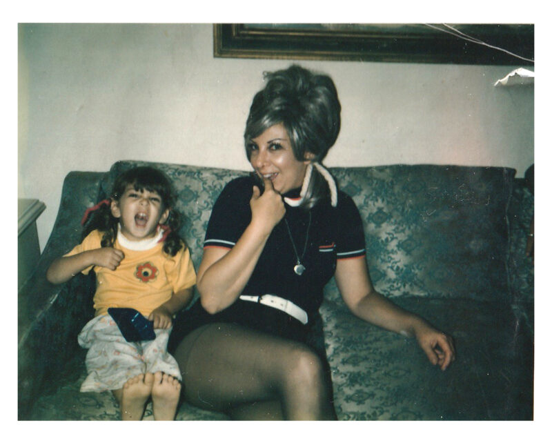 All I know is that we were being silly. My mom didn’t dress like that, and she didn’t wear wigs that often. She wore them, but not all the time, and I don’t remember her wearing that particular one any other time but this day. She also put ribbons in her hair, and that was to match the ribbons in my hair. I remember that part. I remember laughing when my dad took that picture.